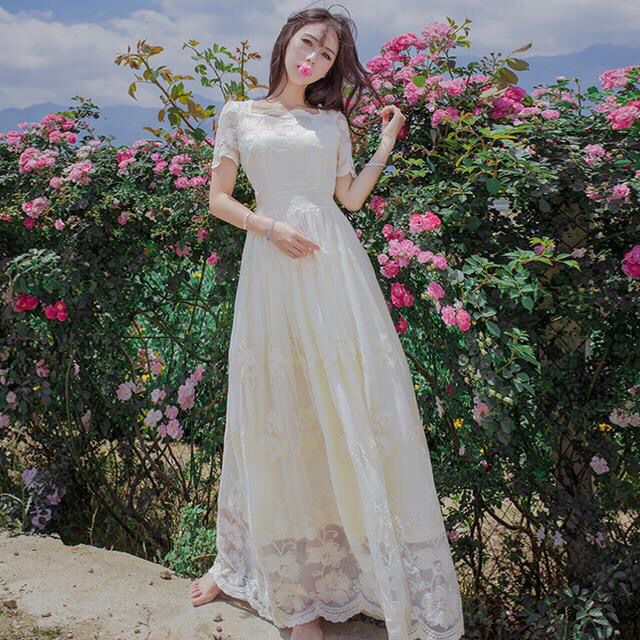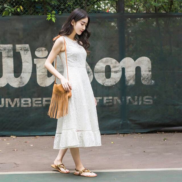 还有什么比蕾丝更深得女人心?这样一款精致的蕾丝裙还有着一份独有的小性感,大摆的荷叶边造型,上身效果更棒了!面料舒适,穿着透气亲肤,搭配一双系带罗马鞋或者一双凉鞋,都非常漂亮呢~