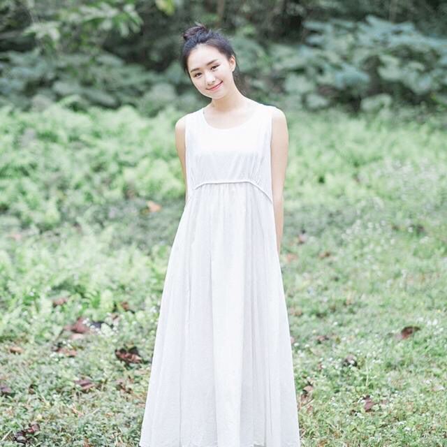 这条裙子版型上选择了无袖设计,显纯情的白色,小清新style瞬间爆棚~采用了两次高密度的纯棉面料,腰部做了微收腰设计,恰到好处的拉高了腰线。超大的裙摆,上身很飘逸哦~