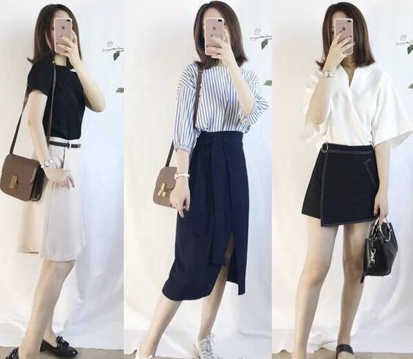 夏季通勤可以选择一些简单又好的搭配衣服,比如经典的白色衬衫,没有肤色的蓝白条纹衬衫,搭配开叉裙,简单又不沉闷,得体大方的气质特别适合上班。