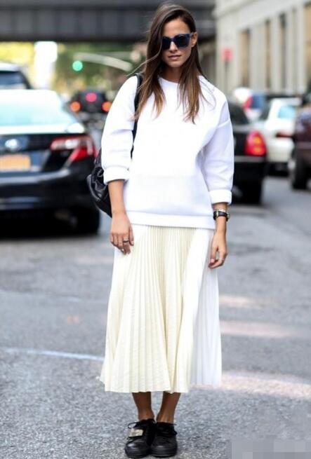 这7款卫衣的第一种,白色卫衣,十分凸显气质。搭配一条浅色的裙子,素净而温婉。脚踩一双黑色的鞋子,黑白搭配,显得简约大方。pick一个黑色的包包,和鞋子相呼应,十分有整体感。用一副墨镜来使小仙女更加有魅力,效果十分好。