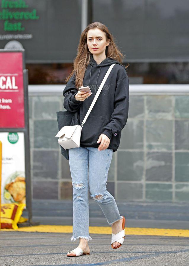 这几年流行的牛仔裤那么多,要说女孩子们最喜欢哪条,那破洞牛仔裤肯定拥有姓名。破洞的样式也是千奇百怪,有一刀切和轻微磨损等,穿在身上感觉时尚又休闲另类,美得让人窒息,是女孩子们减龄必备的时尚单品。不过在选择破洞牛仔裤时千万要记得并不是破洞越大越时髦。黑色连帽卫衣搭配九分破洞牛仔裤,简单随意,整体造型起很好的保暖作用又时尚好看,一点也不会过时。小个子女生们可以大胆选择。