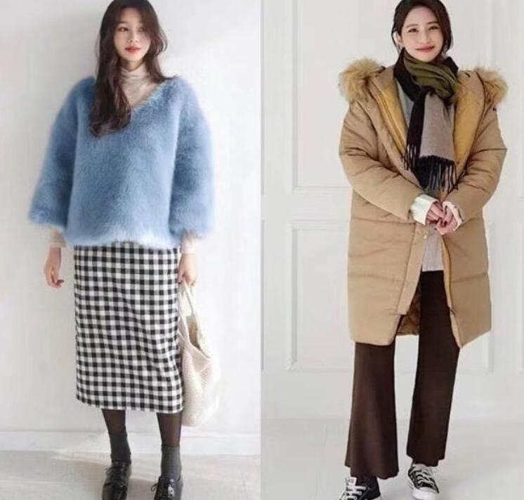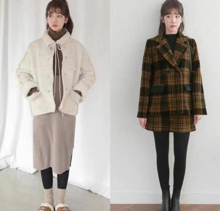 裙装,在冬季非常的百搭,方便又显瘦。撞色系的连衣裙,卡其色与咖啡色拼接,两种都是比较温和的颜色,给人一种非常柔和的感觉,满满的休闲风,外穿一件白色棉衣,麂皮面料非常的有质感,保暖又显瘦,穿一条黑色加绒裤,紧身的设计一点也不会显得特别的臃肿,反而非常显瘦。整体搭配简单干,净毛呢西装套装,深黄色的款式非常复古,A字裙裙摆能够很好的修饰大腿的线条,既显瘦又显腿长。