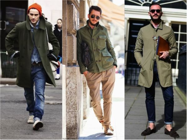 军绿色带有粗犷、硬汉,是一种个性与酷的色彩,似乎没男生会拒绝军绿色。军绿色的外套搭配卡其色式最保险又有型的色彩搭配法则。男生长得再高,有4个硬伤穿衣服也不好看