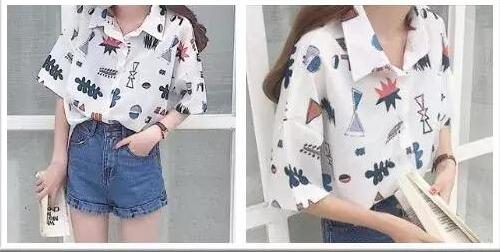 少女心十足的夏季学院风短袖衬衫,宽松的板型,藏肉显瘦,微胖妹子穿也可以,可爱的印花设计,百搭时尚,充满了年轻的味道,时尚又减龄,穿上就像走在校园里青春浪漫的学生妹,那般娇嫩迷人。