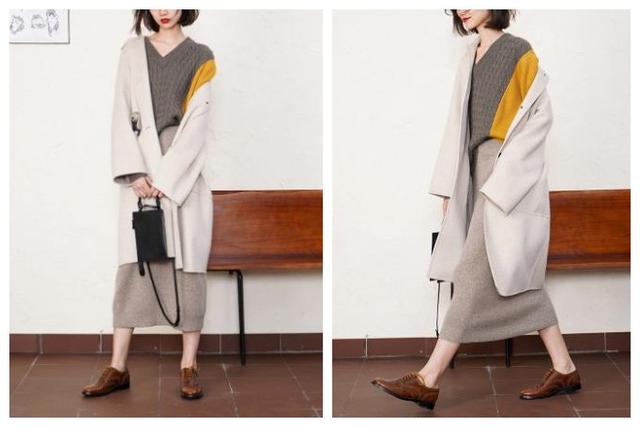 三四十岁想要搭出显年轻的效果,针织衫+针织裙+毛呢外套搭配,拥有一股清新的魅力感,气质有种偏重于知性高级风,可以轻轻松松塑造简单高级的气质,它是属于三四十岁女人的一份高雅装扮,很好的塑造着女人的气场感,每走一步都感觉很抢眼呢!