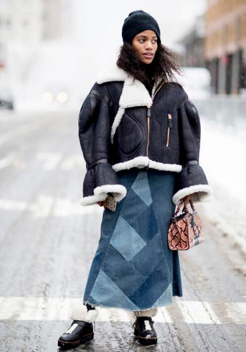长款的半身裙搭配皮大衣其实很时尚,就像图中的搭配穿衣法,很好看,能给人很干练的感觉。选择短款皮衣搭配百褶裙和长款半身裙搭配皮衣也是非常时尚的,就像图中搭配的穿衣方法非常好,能给人很干练的感觉。选择一件带褶皱裙的短款皮衣。