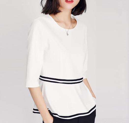 白色T恤质地自然柔软,手感光滑,圆领设计简洁大方,穿着更方便简单。它有很好的悬垂感。它很整洁,不易折叠。袖口和衣服都是通过编织来收拢边缘的,比普通的编织风格更加光滑美观。经典的黑白条纹弧线设计说明手臂很薄,宽松版的下摆覆盖了腹部的好胸部哦,穿起来很不错。这是一件非常简单苗条的T恤。