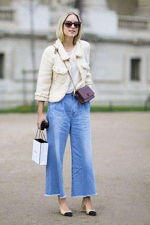 在挑选阔腿裤的时候,尽量要选择颜色较深一些的阔腿裤,深色能够让你的腿部从视觉效果上看起来变得更细一些。对于小腿肌肉较发达,但大腿较为匀称的女生来说喇叭裤是一款能够很好修饰你腿型的牛仔裤。喇叭裤在小腿以下慢慢张开的设计,能够很好地掩盖住你的小腿,让人很难察觉你的小腿有着很多的肌肉,并且喇叭裤在大腿位置的设计相对较为修身,这样的话你的腿部整体线条是能够得到很好的提升的。