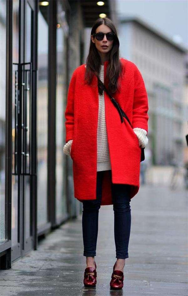 大红色与任何内搭或者鞋子都十分不好搭配,里面稍微穿的艳丽一点,都有点像花枝招展的蝴蝶一样。搭配的简约大气,又与大红色的气质背道而驰。大红色让你看上去躁动不安还张扬,实在是土气又廉价。过了30岁的女性,大红色的大衣真的要少穿,应该多穿符合气质的深色系才更好。
