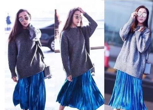 在春天我们可以搭配上一件比较宽松的毛衣,圆领的设计看上去更加的温柔,灰色系的色调让你感觉到时尚的高级,尽管毛衣上面没有过多的图案,但是你可以在下半身搭配上一条金属系的百褶裙,蓝色的色调能够一扫上衣给你带来的沉闷感,让整体的搭配也显得靓丽了一些,在春天如果你穿他的毛衣比较厚的话,那就不要把下摆硬塞在你的裙装里面了,直接把它放下来,盖住你的膝盖部份,那你囤积了一个冬日的脂肪很好的被掩盖住,下半身看上去也就更加的显瘦了。