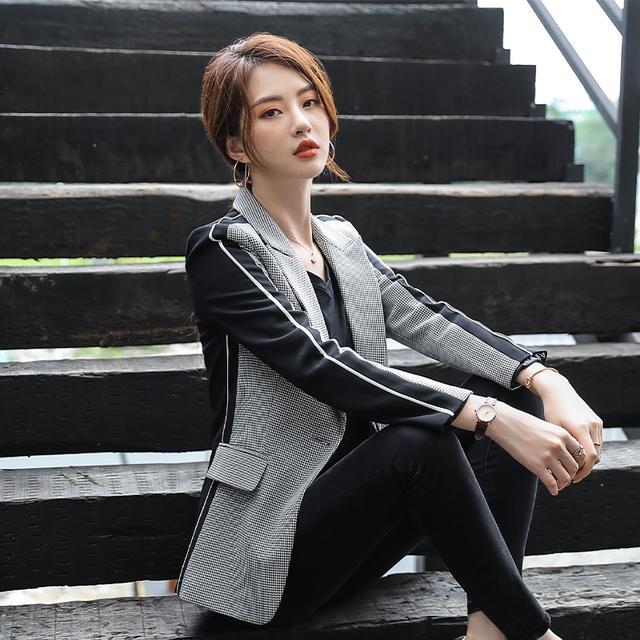 格纹西装不太硬朗,适合我们的休闲装。翻领设计优雅时尚。流畅的线条不俗,也特别纤细。它凸显了你苗条的身材。优雅又轻盈又有女人味。真漂亮。你可以试试你最喜欢的美女。