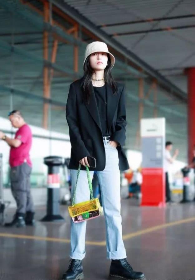 周雨彤是最近小编非常喜欢的一个女明星,不仅颜值高而且演技还非常好,她也穿过西装和牛仔裤的搭配。她选择的是一件黑色的外套,内搭一件同色T恤,下身穿的是浅色的牛仔裤和马丁靴。黑色的西装会给人一种比较正式的感觉,再加上牛仔裤的加成,会让人觉得这一身衣服特别帅气。