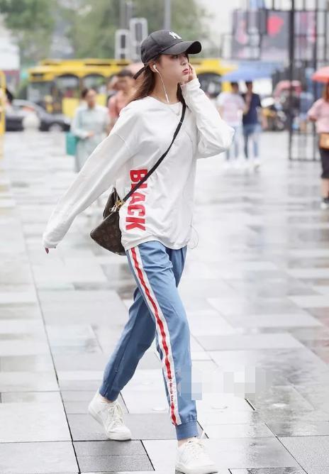 这种搭配是最常见的,裤子也挺好买,运动裤呀,牛仔裤呀,还有阔腿裤呀,都是可以与卫衣进行搭配的,光腿怕冷的女孩可以进行尝试。裤子一般能遮住腿型,可以隐藏腿部不完美的缺点,走路起来有种自然随性的风格。