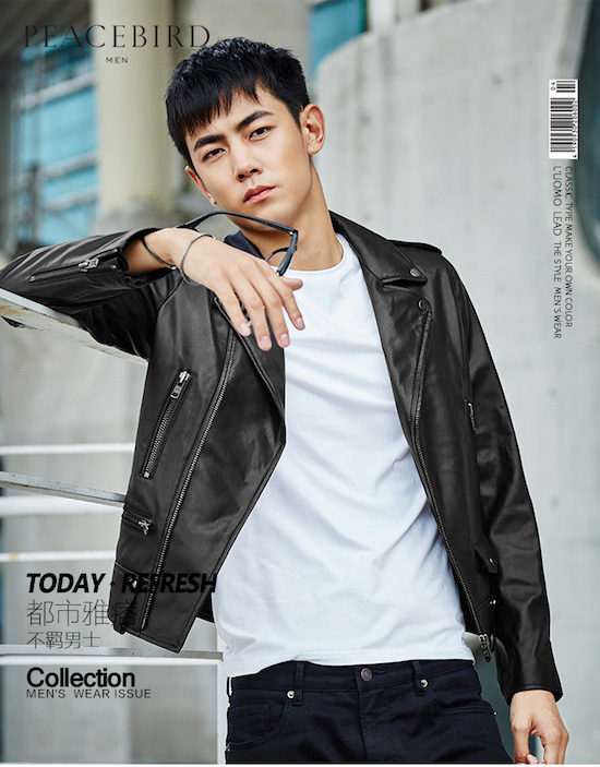 男士修身小西装如何搭配?机车夹克能够穿出街头帅气风,又能打造出硬朗干练感,因此一定要选择机车夹克作为你的男装冬季搭配伴侣,穿