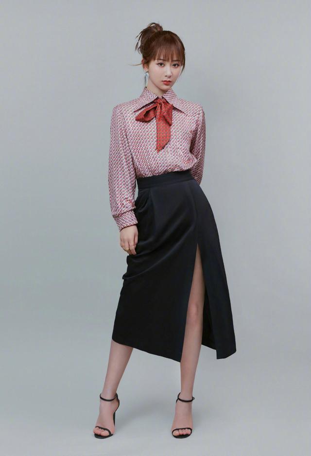 作为童星出道的杨紫可以说是大家看着长大的了,很多人对她的印象还停留在小女孩的阶段。其实27岁的杨紫已经越来越成熟,在穿衣搭配方面也有了小女人的优雅气质。身穿粉色蝴蝶结衬衫的杨紫活泼俏丽,仿佛还是大家记忆中的少女,下身搭配黑色开衩高腰裙,整体搭配性感又不失清纯。杨紫虽然身高有167厘米,但是身材比例却不是太好,腿看起来比较短,但是她很会利用衣服来掩盖自己的缺点。将衬衣塞进高腰裙里能够提高腰线显腿长,可以说是非常机智的穿法了。