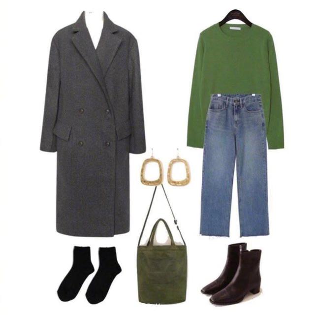 灰色的大翻领大衣有高级感,灰色给人一种很中性比较清冷的感觉,灰色大衣可以选择比较亮眼的颜色进行搭配,时尚又活力。绿色的圆领针织毛衣,非常的清新,搭配一件直筒撕边牛仔裤,青春又有活力,一双短靴,增添了几分的帅气。同样用一个绿色的包包作为搭配,整体的搭配帅气又有活力,十分的时尚。上一篇:冬天怎么穿不显臃肿?下一篇:冬天阔腿裤配什么上衣?