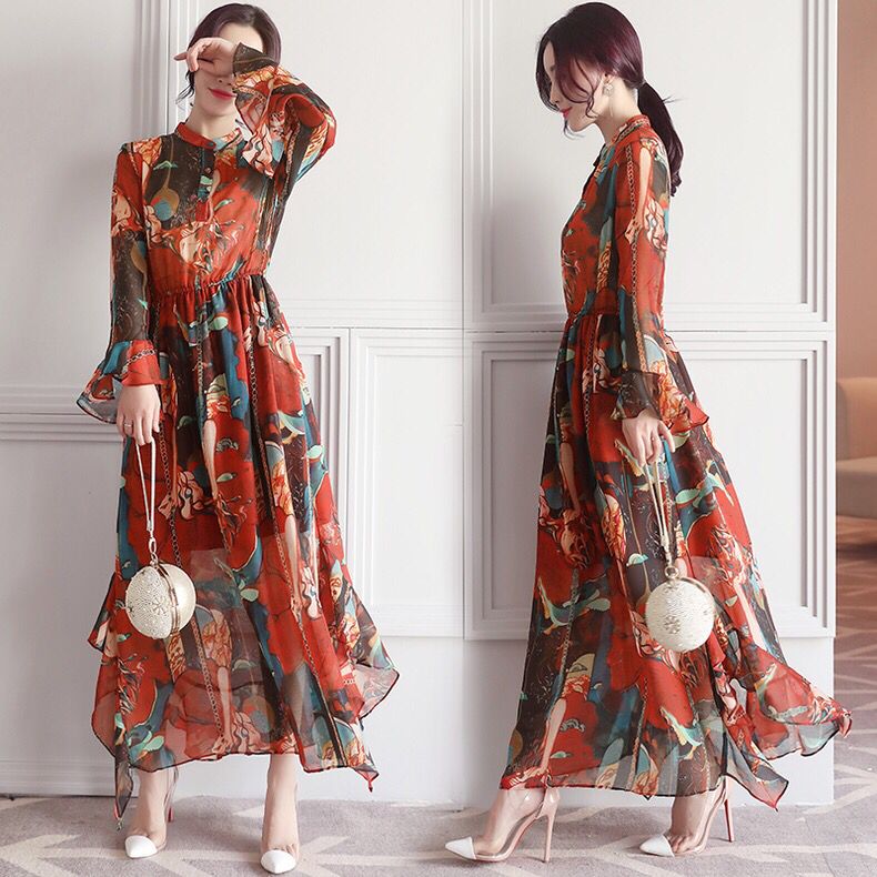 碎花特别精选的一款雪纺连衣裙,超级舒适气质。大花裙子是非常适合秋冬的穿着的,长袖的质感,飘逸感十足。 腰部有松紧腰设计,品质感非常好。 碎花推荐的裙子,美,一直分享。 关于面料:精致韩国雪纺面料,舒适,适合春秋季单穿和搭配穿着。