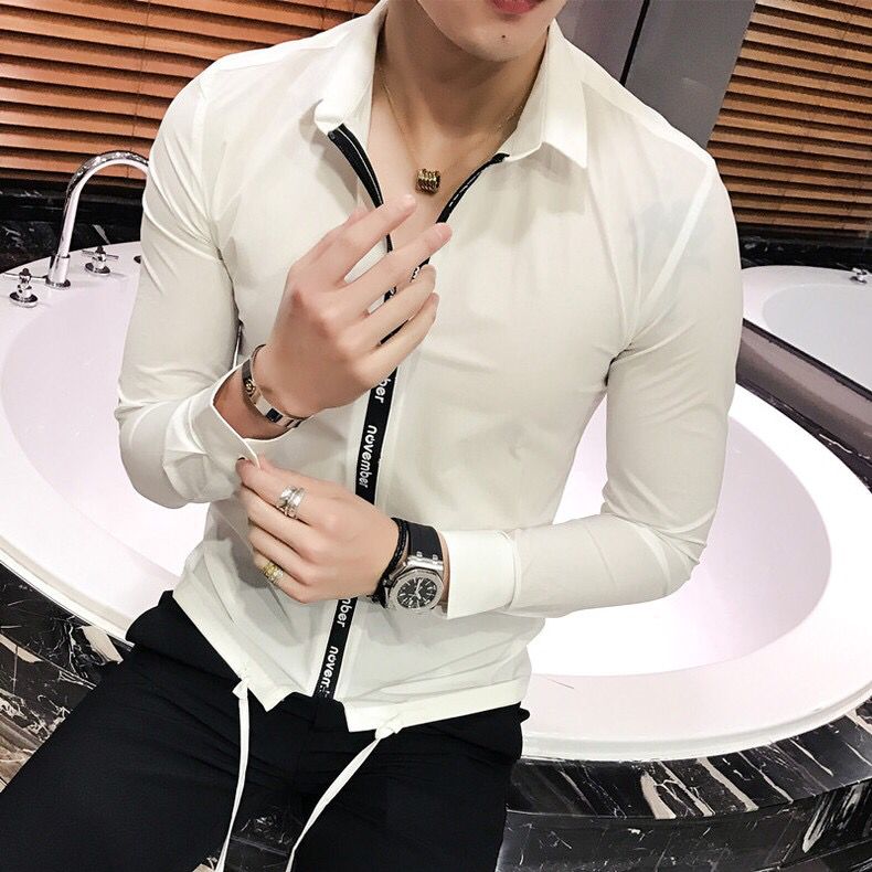 纽扣的衬衫相信大家穿多了,拉链的衬衫你穿过吗?超级有个性范气息,个性的织带设计,加上字母的印花,显得十分时尚酷炫,干练的翻领,也穿出了男人的魅力,这样的衬衫,一定得尝试一下。