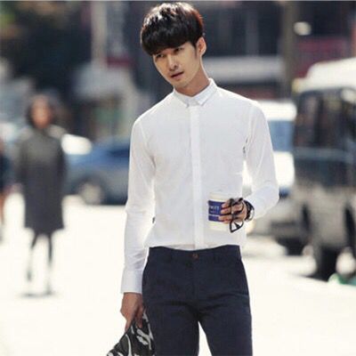 暖男级别的白色衬衫,简简单单,却帅气逼人,尖尖小翻领,穿着起来非常时尚有个性。上班的话,搭配一条韩版休闲西裤,整一个男神的形象,十分阳光帅气。