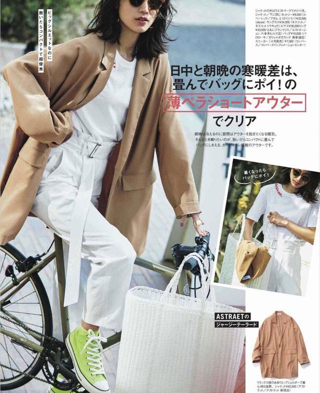 中长款风衣适合春天穿。它能很好地应对早晚温差的变化。早晚不会太冷,中午也不会太热。芭蕉里面一件清新的白色T恤,简洁明快,裤子我们芭蕉是白色直裤,白色的效果非常亮丽,也与白色T恤达到了前所未有的一致感。