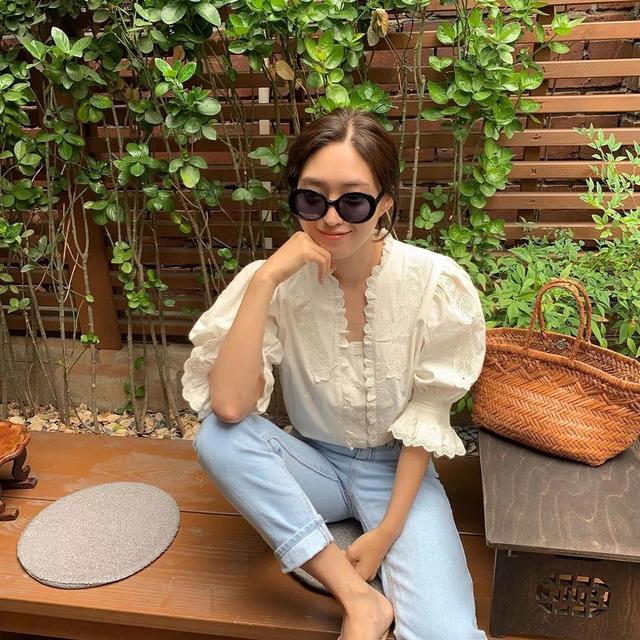 我觉得白衬衫和牛仔裤真的是真爱!复古宫廷风格衬衫搭配休闲牛仔裤,将高贵与不羁的牛仔融合在一起不会显得突兀,反而更衬托出女孩浪漫优雅的风格。衬衫凸起的肩线和荷叶边的装饰让华丽的糖果袖充满了复古的宫廷风格,而搭配裤则超级浪漫和高端。