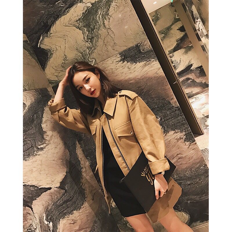 这款风衣我觉得就是很有风格又很有腔调,可以很小女人又可以很率性的一件,军绿色本来就足够的帅了,加上背面收腰的小女人设计,让证件衣服充满磁性,让经过身边的人都忍不住看你哦~