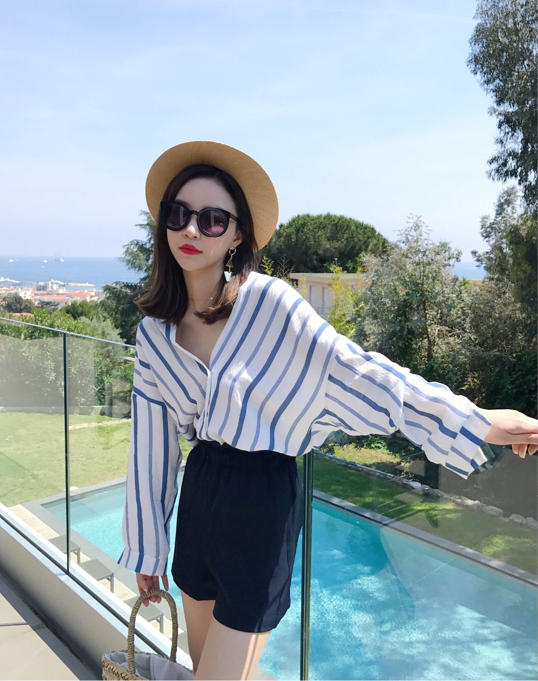 整体的感觉就是我很喜欢的慵懒风,休闲又随意,如果觉得过于复杂的设计款式会有距离感,条纹的衬衫版型足够的吸睛,加上性感的大落肩设计,让你的气场提升不止一点点啦~
