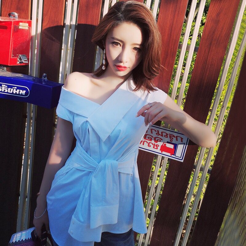 女孩子嘛,无法拒绝心机小性感,而露肩美是女人深入骨髓的东西,棉的成分又能将笔挺的帅气感融合到其中,一边矜持一边露肩设计,让衣身充满了少女般浪漫;胸围线下加入绑带设计,左右衣片交叠纤纤的腰部线条立马呈现;自然形成不规则的鱼型下摆,走路带风!