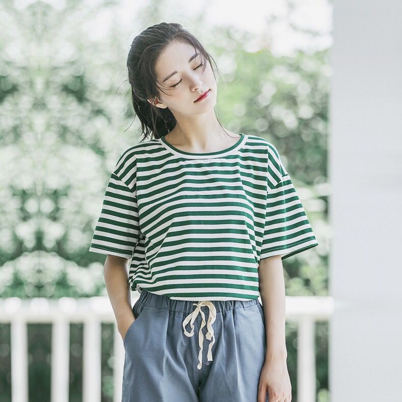 彩色的细横条纹T恤搭配,文艺又清新的配色,春夏季好搭又时尚,宽松的版型不挑身材,纯棉的面料亲肤透气,舒适又气质好,下摆的左右开叉与前短后长设计,别致又显高,随意搭配就有不错的时尚效果。