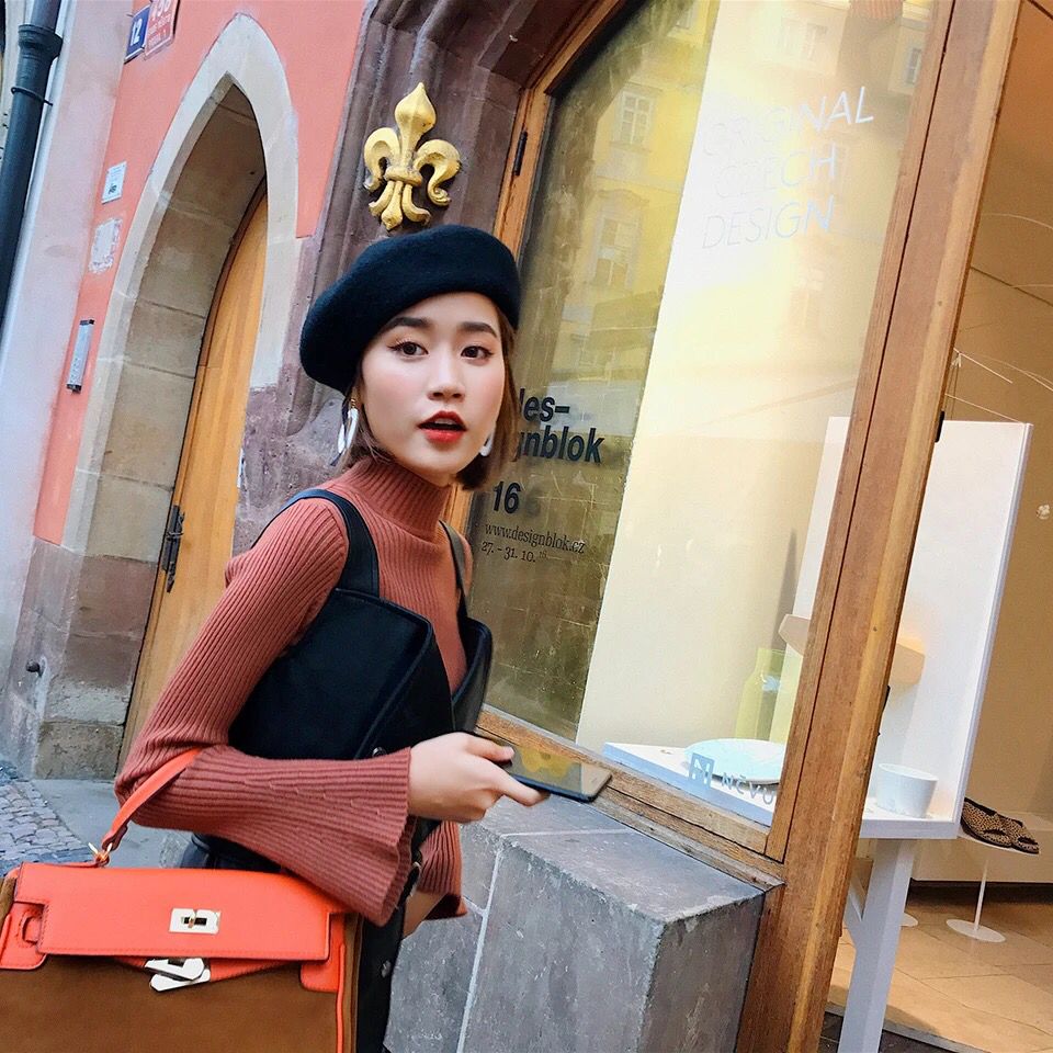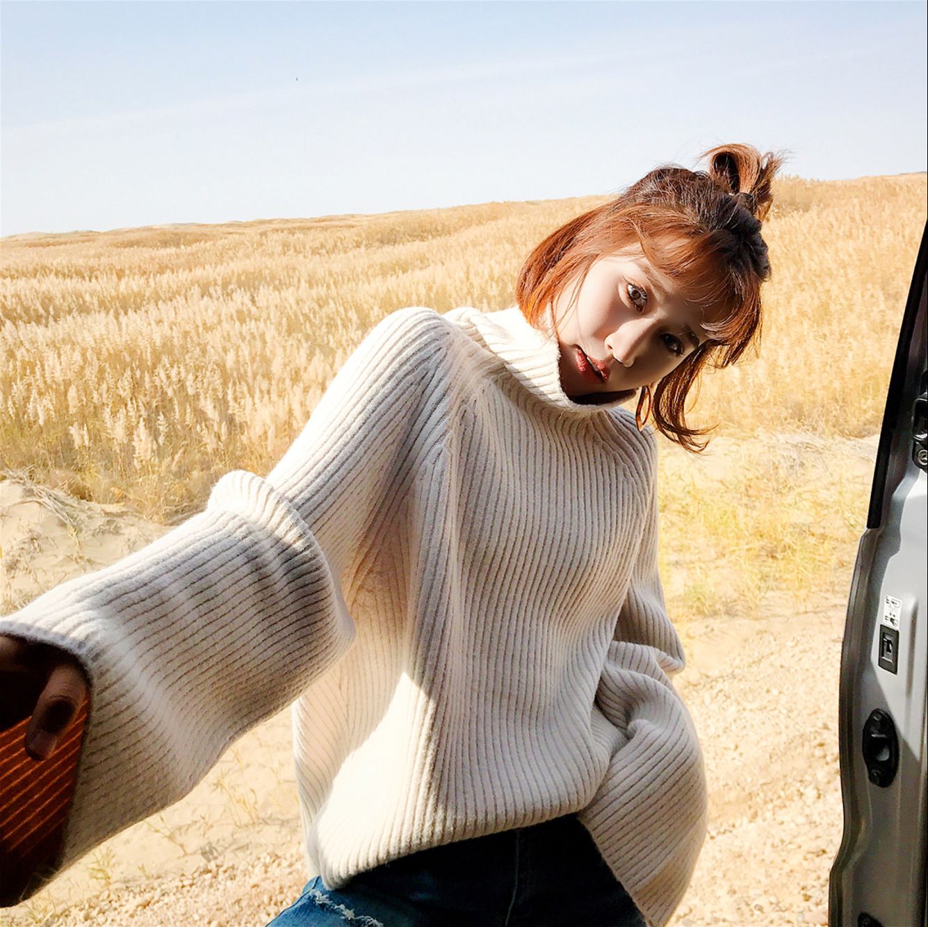 比较高领的毛衣,我更喜欢半高领,半高领更加修饰脖颈,谁让宝宝是短脖子星人呢,委屈脸,半高圆领的设计,修饰脖颈,使得脖子看起来更加修长一些,修身的版型,真心超修饰身材的哈,塑造玲珑身形。