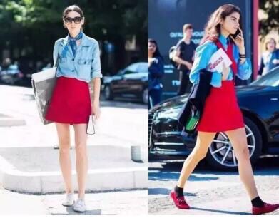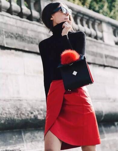 看下面的对比,虽然黑色够简约优雅,可穿着红裙、而且在包包上点缀红色的那个人,明显更时髦也更活泼不是?