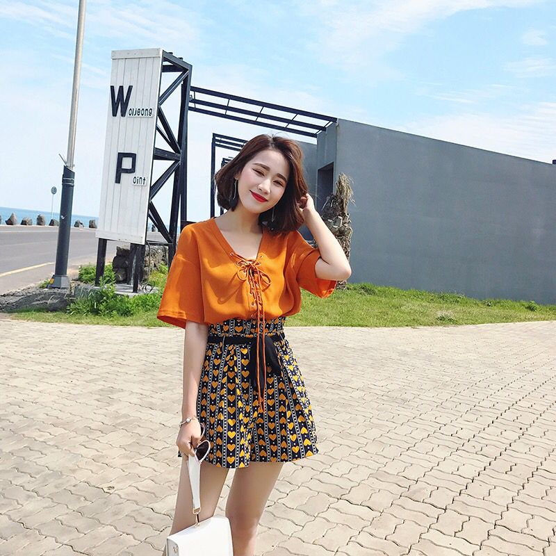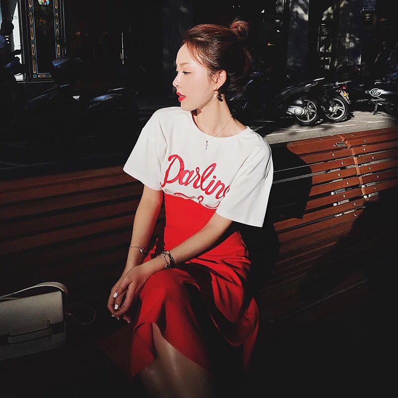 这款套装裙采用了最为经典的红与白的搭配组合,上半身的白色T恤,简洁、干净而又显纯洁,而下半身加由热情似火的红色相衬托,就算是简简单单的裙身版型也会因为这一完美的色系搭配而变得不平凡。碎花连衣裙搭配,夏日美美小仙女