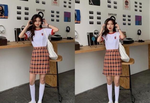 炎热的夏天,当然少不了一条短裙,这条格子直筒半身裙是超短的设计,很显腿长,独特的黄色加黑色的格子图案,让表层富有纹理,立体而不会觉得单调,上窄下款的版型,巧妙显瘦,搭配白色t恤,瞬间减龄,还很显大长腿,极为亮眼,脚上穿一双小白鞋给人青春学院风气息,多一点可爱的感觉,同时也更添时髦感哦。