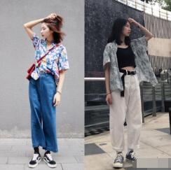 将花衬衫作为外搭也是一个不错的选择,内搭一件露脐小背心,下搭一条白色阔腿裤,将裤腿随意挽起,露出里面的小长袜,这一身参考假肢非常高,适合大多数身材的小姐姐,别忘了在裤腰出加上一条黑色腰带,既是固定又可以作为点缀。