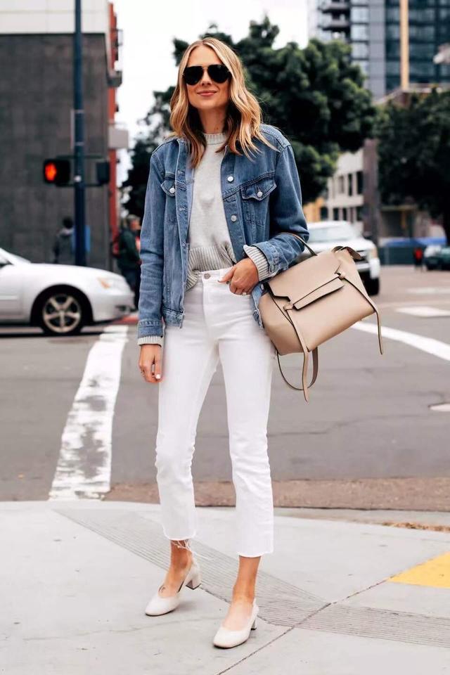 穿腻了普遍的蓝色牛仔裤,不妨可以试一试白色牛仔裤。无论是高矮还是胖瘦,选对了款式不仅修身,照样能盖住自身缺点,展示出女生优美的线条,也会根据不同的搭配展现出不同的气质。简单干净的白色牛仔裤可以与薄毛衣或者彩色T恤一起,在加短款外套,百搭时尚还带点职业感,从视觉上给人干净整洁,简单利落干脆,是通勤装的不二之选。