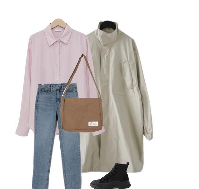 牛仔裤相对是比较清新,也比较适合和粉色上衣搭配的裤装类型,搭配之后会给人一种像是夏天一样的清新气质。而外套则用简约深灰色大衣来搭配,增加了你的气质和稳重感,让整体造型更加有格调。