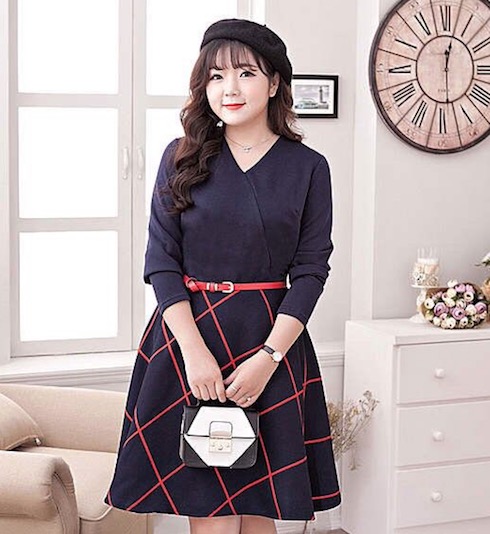 ◆大码收腰连衣裙:好看的V领,收腰的宽边腰带,简直就是一个大写的瘦!撞色的格子设计是整条连衣裙最大的亮点,有层次感,很能提升宝宝们整体的气质。宝宝们心动了吗?