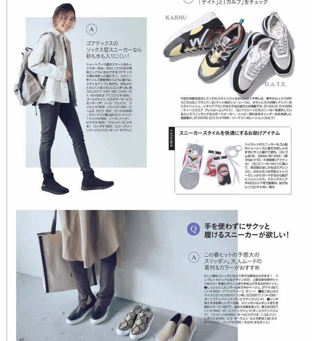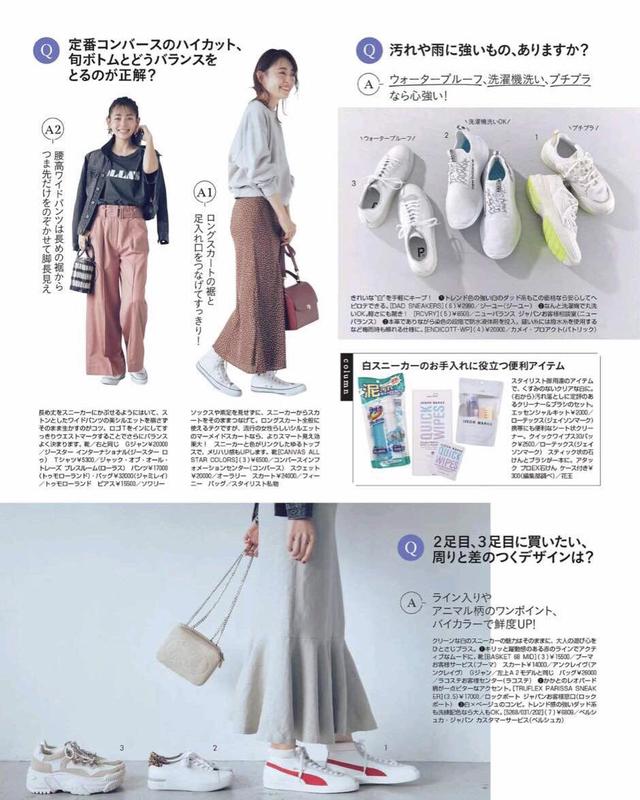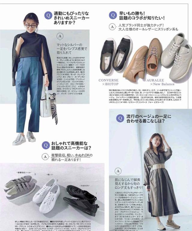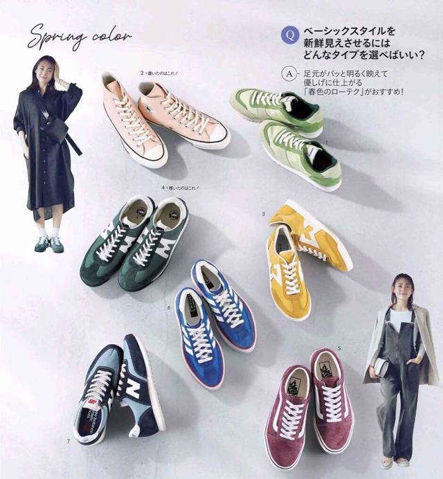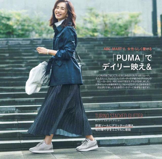 运动鞋其实是相当有青春气息的款式,运动鞋穿着十分舒适,同时能够让人联想到学生时代的活力,因此是意外的减龄神器。运动鞋在搭配的时候可以选择和简洁亲和的日系风格搭配,也可以和甜美的服装搭配,都能展现出不错的效果。