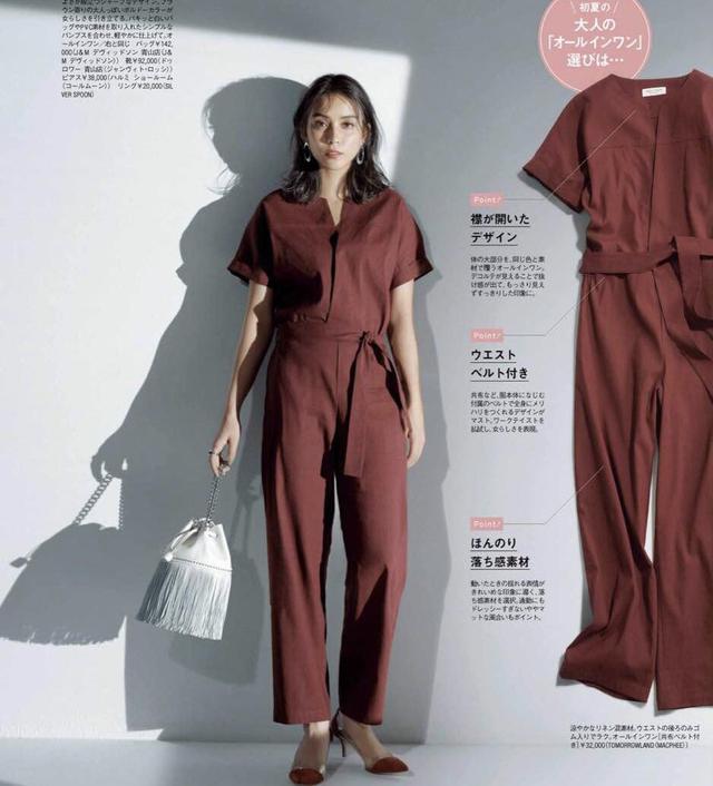 连体裤的是比较适合年龄大一点同时很有气质的女人的,棕褐色本身就是一种很有深意和内涵的颜色,所以对于体现气质这一方面,它非常的有表现力和话语权。