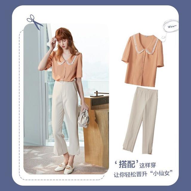 浅橙色的宽领短袖上衣搭配白色九分裤,这一身打扮看起来非常的清爽。如果是性格比较热情开朗的女人可以选择这一款搭配装扮自己,橙色更加的凸显出自己的性格来,显得甜美有活力。搭配上白色的皮鞋,就更加添加风采了。