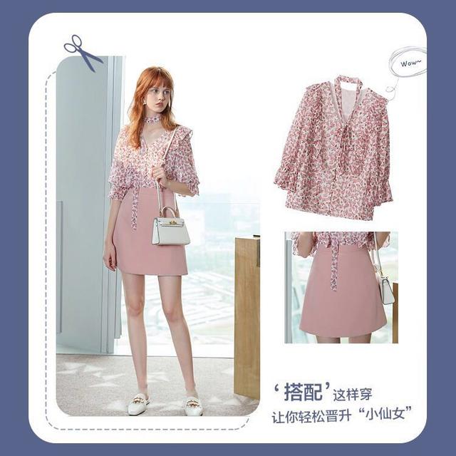 粉白色碎花V领雪纺上衣搭配粉色的短裙,这一款看起来非常的浪漫,很有小女人的味道。这个春季里,很多姑娘们都喜欢这样的打扮,时尚有自己的独特味道在里面。