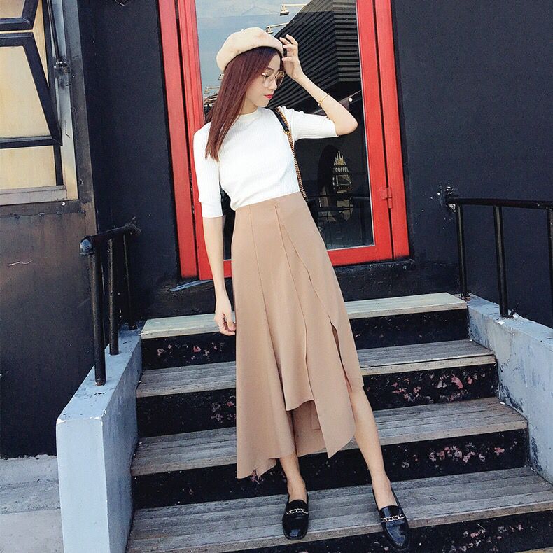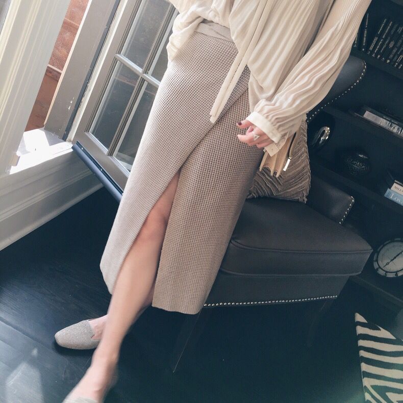 非常百搭且好搭配的一款开叉针织裙,自然的腰带加上高开叉的设计会视觉效果拉长腿型,比较显高!针织纹理也是立体的,很有质感的一条裙子,米色和黑色两个百搭色,基本所有春夏色系上衣都可以搭配到。