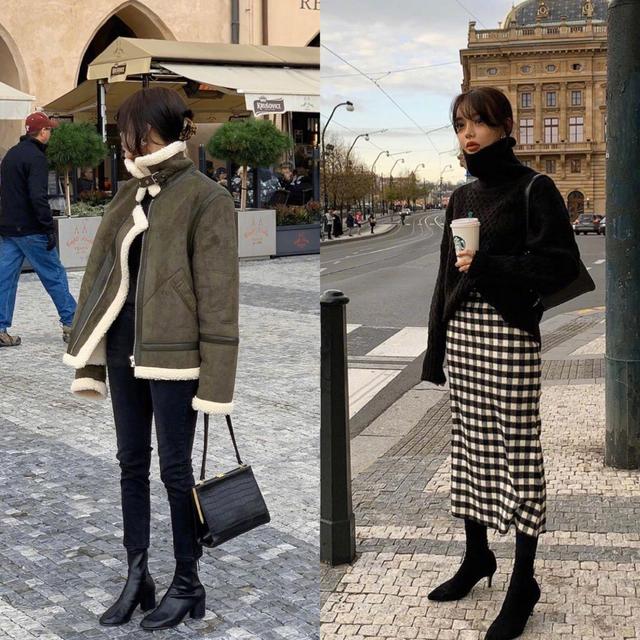 黑色的高领毛衣搭配上一件黑白格的半身裙,女装搭配,脚上穿着一双黑色的高跟鞋。又是经典的黑白穿搭,时尚感扑面而来。一件军绿色的机车棉服和一双黑色高跟鞋的搭配帅气尽显。像这种机车式的羊羔服外套,在今年也是大火的单品,在各大平台上都卖的非常好,非常推荐大家选择。