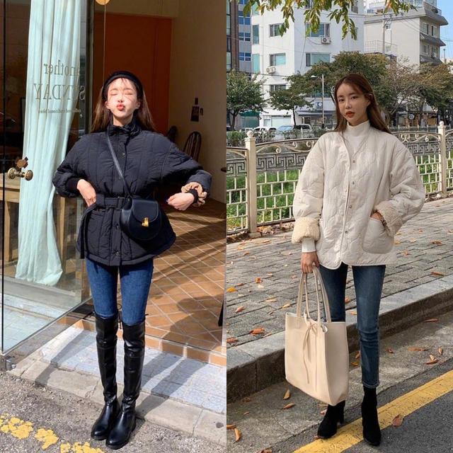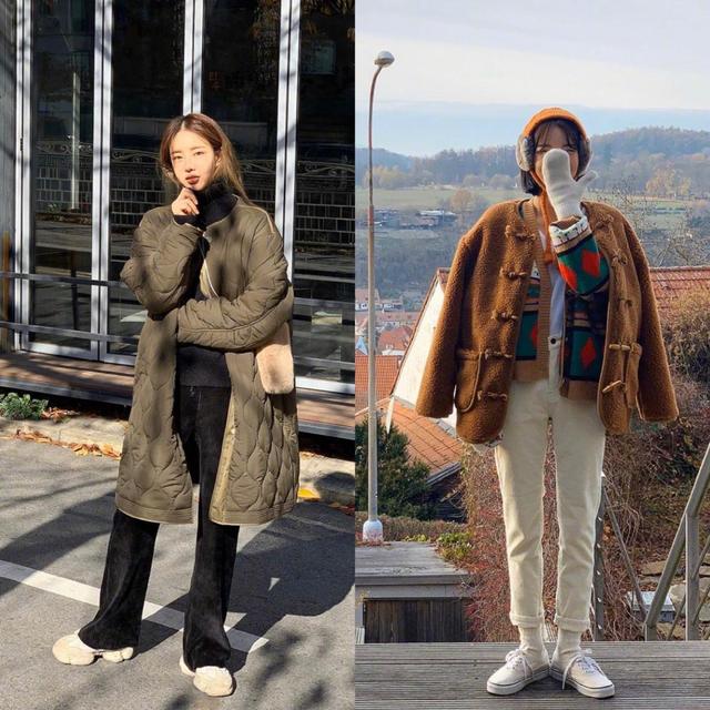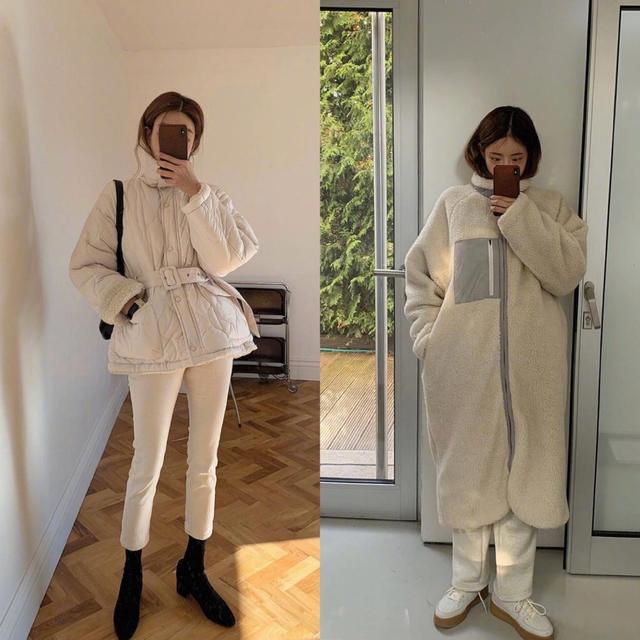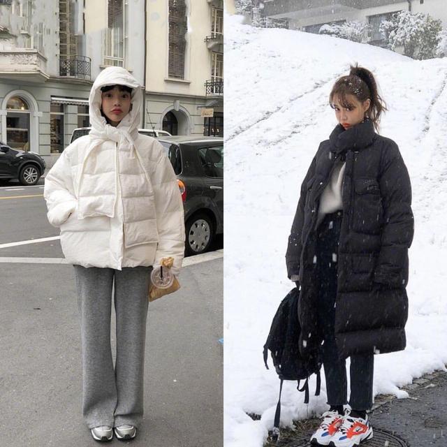 白色的棉服干净,温暖。灰色的阔腿裤,可以很好的修饰不太完美的腿型。一双休闲鞋把整体的感觉拉到了休闲专区。而一件黑色的棉服加上一件黑色的休闲裤,加上一双休闲鞋休闲气质立显。