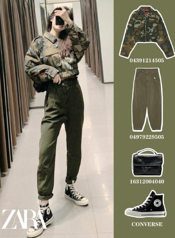 这套绿色工装风搭配小编给一百昏!在秋冬看到最多的颜色就是大地色系,突然来这样一套绿色系搭配眼前就会一亮~这件短款迷彩夹克流行了这么多年还是很好看,短款的版型可以说很贴心的照护到了小个子妹子,zara试衣间冬季穿搭图片酷女孩才是今年的大势~