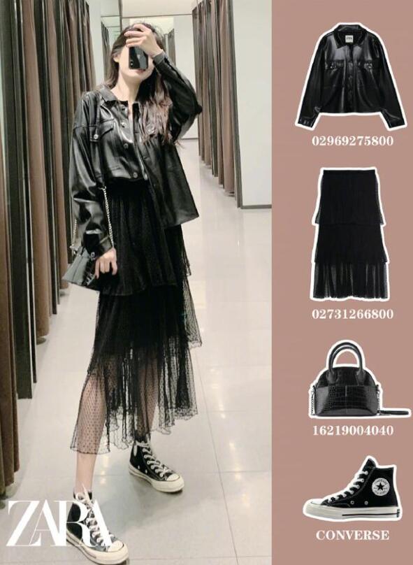 这套搭配就是典型的冬季夜店必备款了,喜欢也夜店的小姐姐看过来。黑色绝对是所有颜色中最高级的一款,整套搭配以allblack为主题,就算是夜店风也开以很高级了~纱裙与帆布鞋的混搭,也是很新颖了,毕竟帆布鞋可是潮人必备!