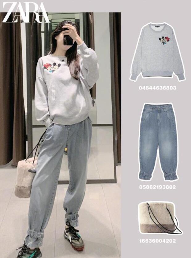 冬天没有卫衣相陪一定是不完整的!这套卫衣的搭配以灰色系为主,光是看上去就很有时尚感了。单品都比较偏宽松,很好的营造出了嘻哈风。米老鼠印花卫衣可爱童趣,就算酷女孩路线也要适当的秀出可爱的一面才迷人。