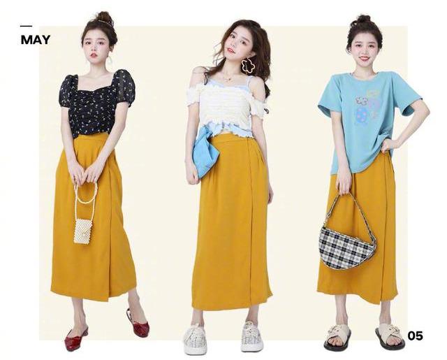 黄色的高腰半身裙不会显得臃肿,由于直筒的版型更有显苗条的效果。这身搭配衬托出夏天的小美好,可以把女人温柔阳光的一面展现出来。时尚服装,