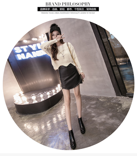 3.钉珠的点缀就是这条裙子独特之处,使裙子复古甜美又小清新,精致之处就是在于细节。搭配上不规则毛衣,今年冬天流行穿什么短裙美腻呢。穿上立马突显出干练美艳的职场气质。