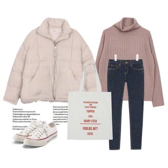 淡粉色的短款棉服能够展示出少女心,选择这样的服饰也可以体现出活力。更重要的是,挑选一件简约的毛衣不仅保暖,还可以让你的穿搭看起来不臃肿,同色系的配色,给你免去了很多的搭配烦恼。看起来洋溢着青春的气息,减龄感十足,选择一双白色的帆布鞋能够让你的整体造型看起来更加养眼!